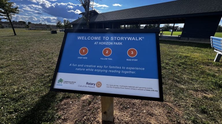 One of the key focus areas of Rotary is literacy. With that in mind, the Rotary Club of Mt. Pleasant worked with the Chippewa River District Library to install a Story Walk. The walk-along reading features a collection of 17 storyboards placed along a walking path in Horizon Park.